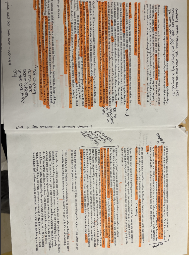 Though, throughout the year, using “They Say, I Say” and the brief guide annotating got more meaningful and helpful for me. When approaching a word, I was unsure of it, I looked it up and put the meaning on the paper, looked up the author to give background on why they wrote what they wrote, and used marginal notes. Using these techniques, my annotation becomes more useful and easier to look back on when writing my essays. I could easily look back and find a quote or paragraph that perfectly aligned with my essay. As shown, the improvement in annotation is tremendous. I use all the techniques and it looks much neater.